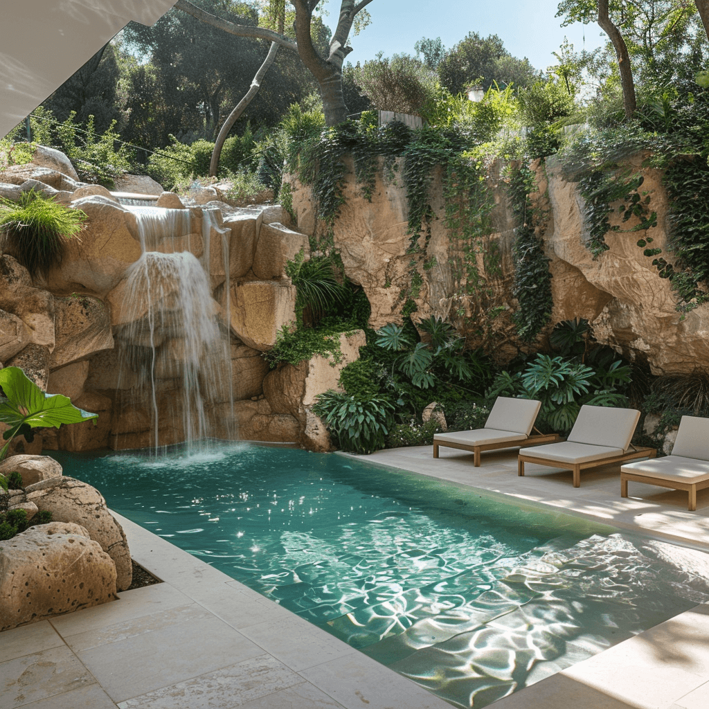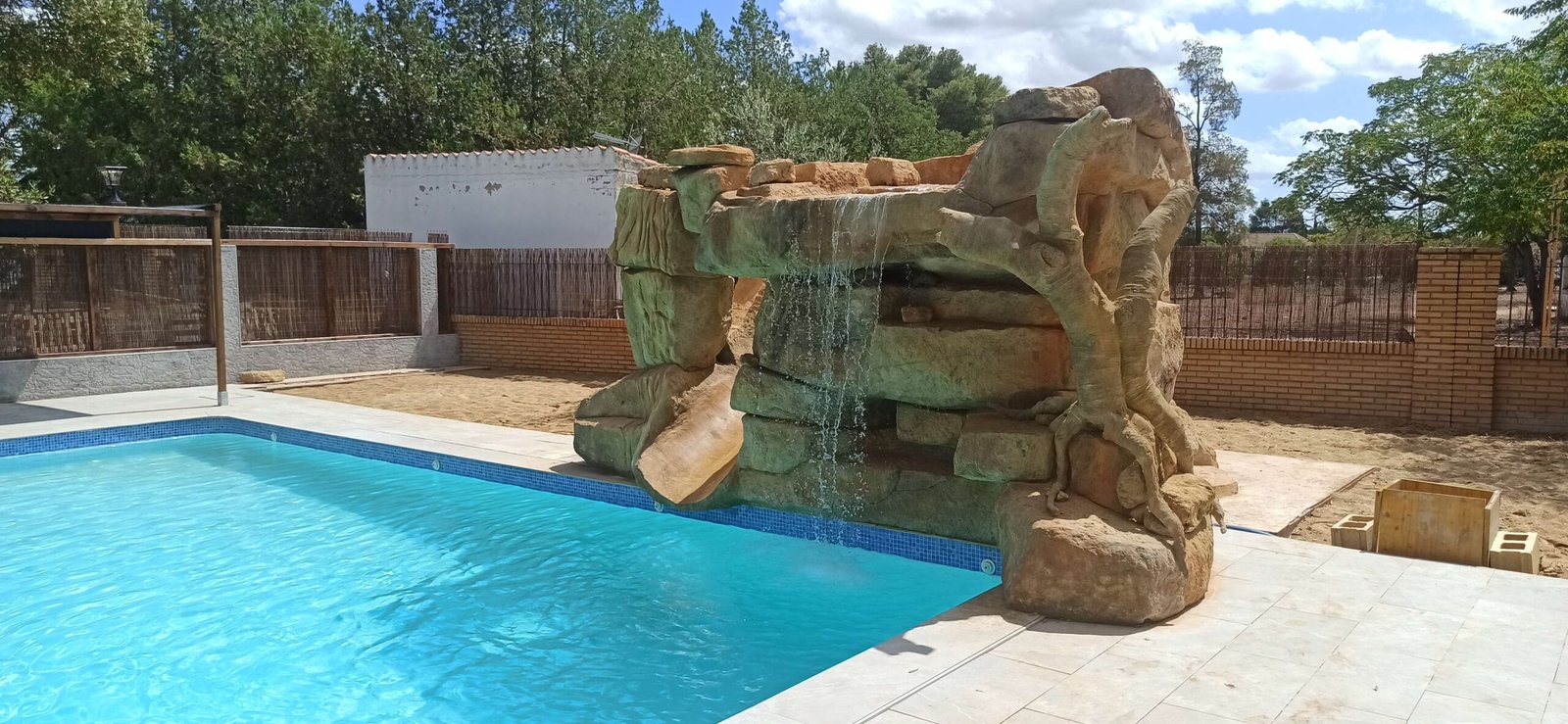Cascadas con efecto de piedra natural en la piscina de tu vivienda. Exteriores decorados con piedra en tu vivienda.